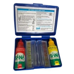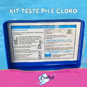 Kit de teste Cl/pH é essencial para auxiliar no controle da qualidade da água da piscina. O prático estojo contem dois reagentes para avaliação do pH e cloro, e um recipiente comparador. Auxiliam na verificação do pH e na quantidade de cloro total presente na água da piscina.