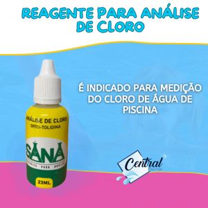 O Reagente de cloro é utilizado para o controle e qualidade da água da piscina.